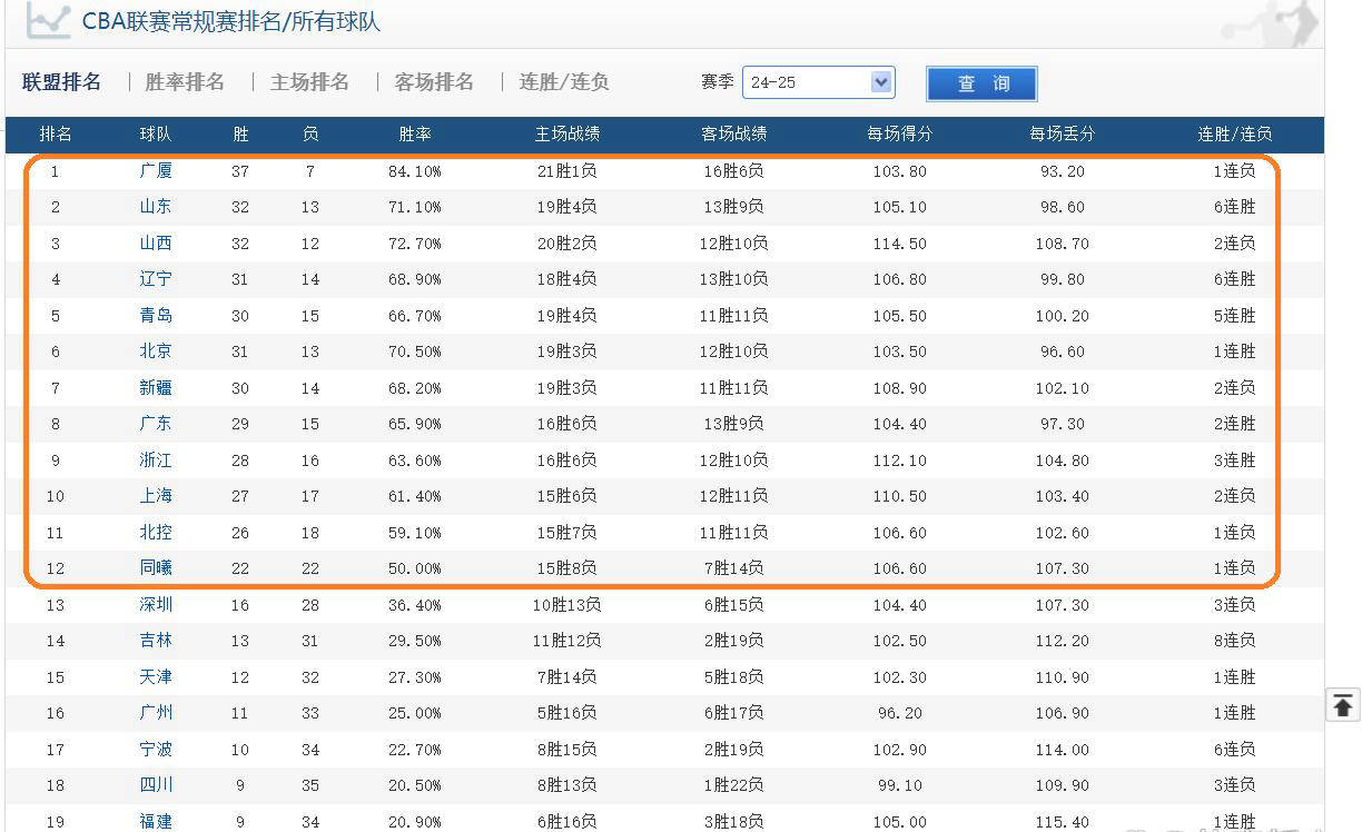 注:排名前十二的队伍将晋级季后赛。「喜欢获取更多CBA赛事资讯,请点赞、转发并关注本账号。」