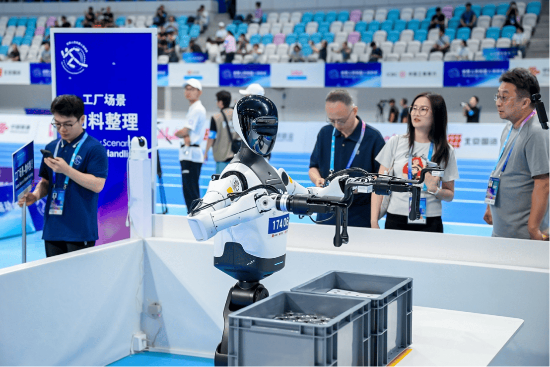场景赛上,4个场景、7个赛项均开赛,共进行71场比赛。其中,北京人形机器人创新中心有限公司旗下的天卓队获得物料整理项目冠军。外围赛集体舞蹈1个赛项顺利完赛,篮球、自由搏击、乒乓球、功夫搏击开展了首日比赛。