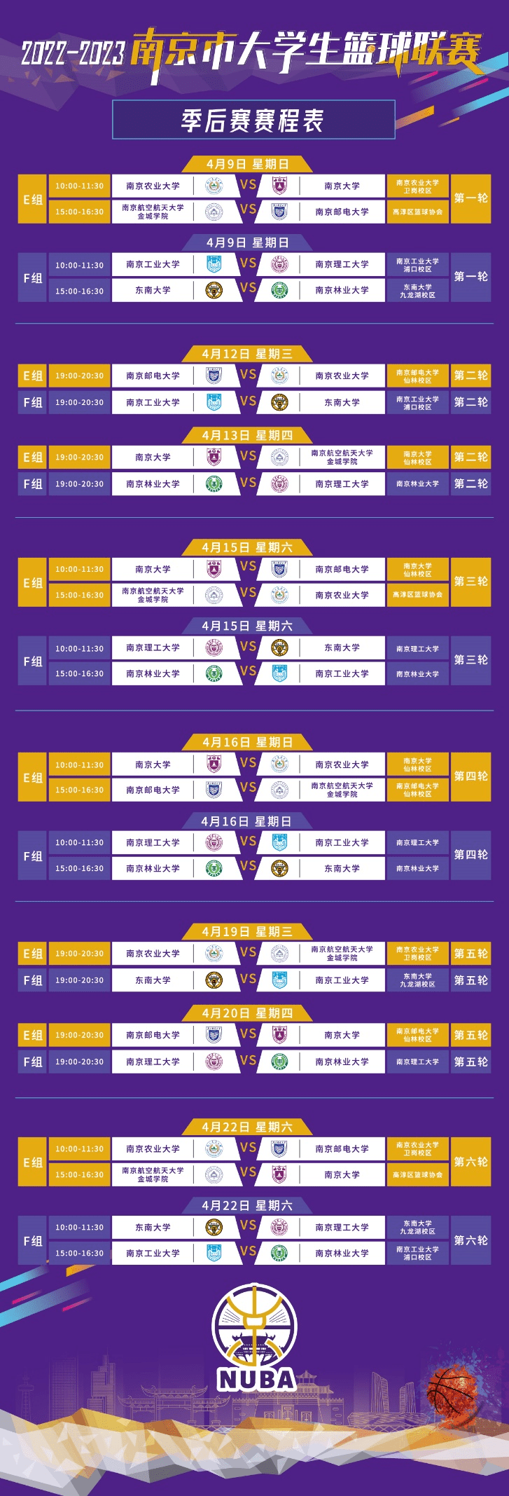 青春无惧,迎篮而上!2022-2023南京市大学生篮球联赛季后赛将于4月9日燃力开启。这是一个集结南京高校力量,展示青春昂扬风采的最佳赛场,这是一场彰显篮球运动热血激情,引领全民健身时代使命的篮球盛会。