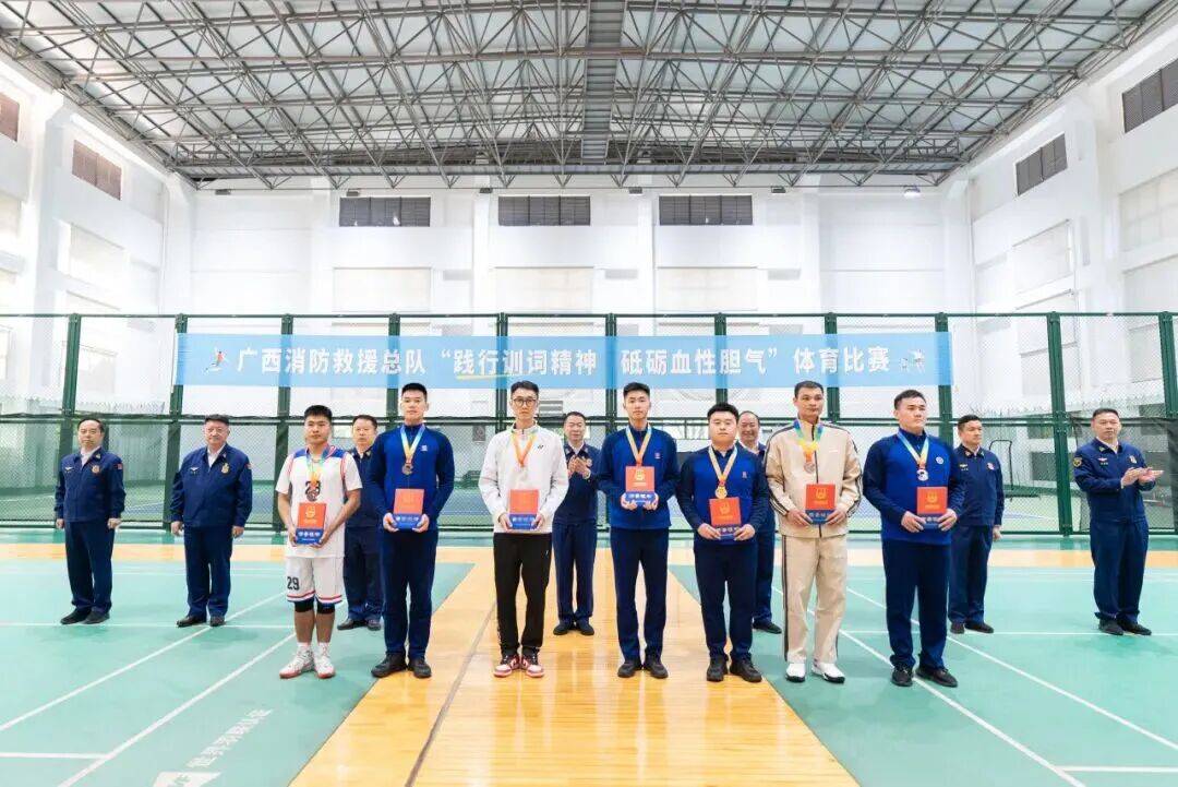 总队领导在仪式上分别为获得篮球比赛前四名、羽毛球团体项目前四名以及羽毛球单打、双打项目冠军、篮球比赛优秀运动员代表的单位和个人颁奖,共鉴荣耀、凝聚奋进力量。