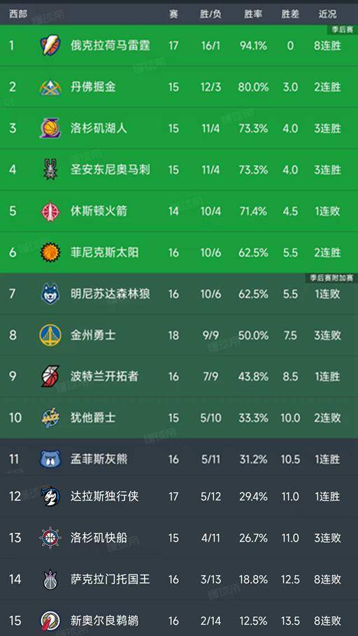 太阳队本赛季失去了杜兰特,加上格林因伤缺阵,赛季前并不被看好。然而,他们今天以114-113险胜森林狼,迎来了两连胜,战绩为10胜6负,暂时排名西部第6位。森林狼则以10胜7负暂时排名第7。 勇士队今天在主场迎战开拓者,库里全场命中9记三分,砍下了38分,巴特勒和波杰也各自贡献了20分。然而,勇士还是以123-127惜败于开拓者,遭遇了三连败。这场失利也使他们的主场战绩遭遇首败,战绩变为9胜9负,暂时排名西部第9位。开拓者则结束了之前的连败,战绩为7胜9负,同样排名西部第9。 独行侠今天以118-115逆转战胜了鹈鹕,迎来一场关键胜利,将胜场数提升至5场,暂时位列西部第12位。鹈鹕方面则继续低迷,以2胜14负排在西部垫底,已经遭遇了8连败,和国王队并列西部最长连败纪录。返回搜狐,查看更多