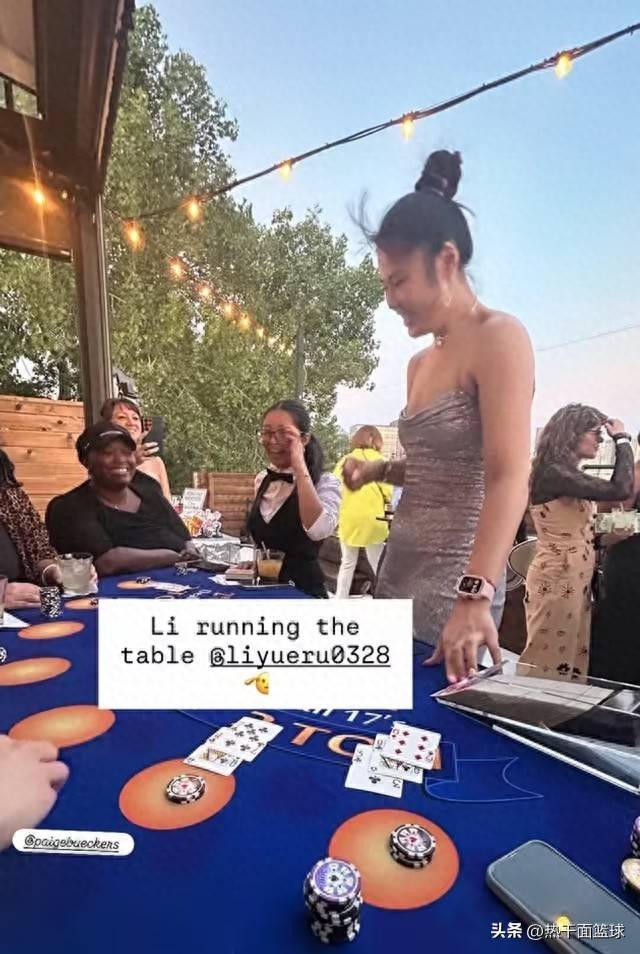 从现场照片可以看到,身着黑色吊带长裙的李月汝正与队友们围坐在一起玩扑克游戏,脸上洋溢着灿烂的笑容。球队核心球员阿丽莎·佩奇也在社交媒体分享了活动照片,并幽默配文:1她把我所有的筹码都赢走了!1这类团建活动在职业球队中相当普遍,正如当年在休斯敦火箭队效力的姚明也曾参与类似活动,其目的在于增进队员间的了解与默契。需要说明的是,活动中使用的只是游戏筹码,并非真实赌注。